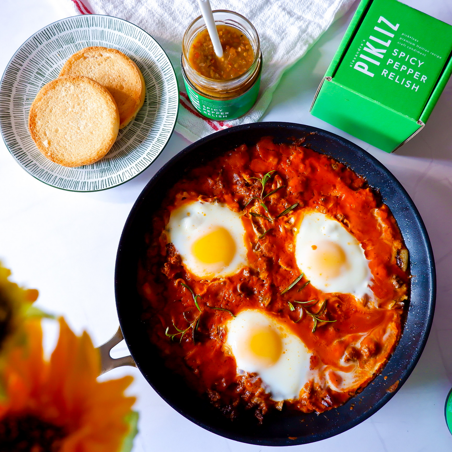 One Pan Skillet Beef with Eggs and Alexandra’s Pikliz