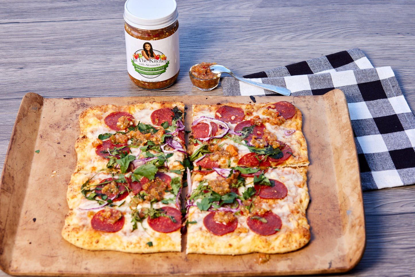 Ingredients:Â 6 oz can tomato paste, 15 oz can tomato sauce, 1-2 TBS oregano, 2 TBS Italian Seasoning, 1/2 tsp garlic powder, 1/2 tsp onion powder, 1/2 tsp garlic salt, 1/4 tsp fresh ground black pepperDirections: Mix the tomato paste and tomato sauce until well blended. Add remaining ingredients into mixing bowl. I donât recommend a white spatula.Use red if possible. Just a suggestion.Serving suggestions: In my kitchen, we sometimes substitute flour dough crust with cauliflower crust. Add more Alexandra's Pikliz if more flavorful heat is desired!