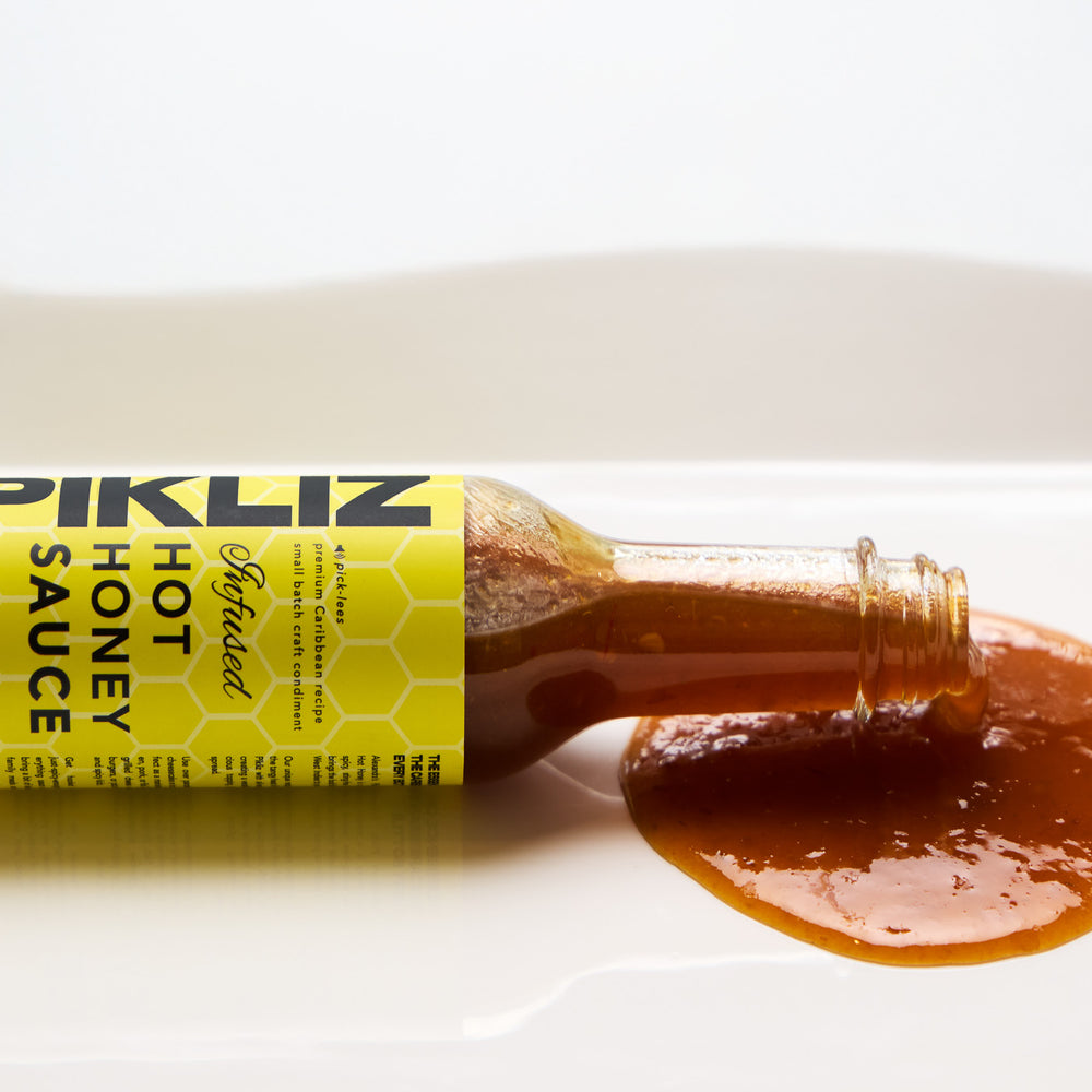 The perfect balance of sweet heat—our signature infused honey, now in a smooth, pourable sauce! A rich blend of golden honey, chili peppers & island spices for effortless drizzling, dipping & cooking.