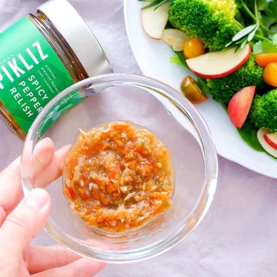 Haiti’s iconic pickled condiment, reimagined! A bold, flavorful pureed relish with a proprietary blend of five chili peppers—zesty, vibrant & packed with heat.